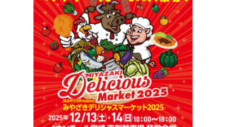 新鮮な野菜や加工品、そして牛・豚・鶏の肉グルメをはじめ、人気のキッチンカーなど30店舗以上のお店が軒を連ねます。なんと今回は「サンリオカフェワゴン」も登場!サンリオキャラクターのクレープなどを販売します。ほかスペシャル企画として、宮崎牛やカンパチなどの振る舞い企画も満載。さらにステージイベントも盛りだくさんで、太鼓やジャズバンドをはじめ、宮崎牛PRでハローキティのステージショー&写真撮影会も開催(12/14(日)のみ)。12/13(土)は10時からセレモニーも実施。せんぐまきもあるのでぜひご参加ください!