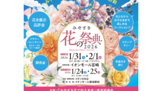 宮崎県民のみなさまに、花のある暮らしの大切さや育てる楽しさをお届けするため「みやざき花の祭典2026」を開催します。今年はメイン会場となる宮崎市に加え、日向市と都城市にもサテライト会場を設け、県内各地で“みやざきの花”をお楽しみいただけます。会場内では、フラワータワーやオブジェ、フラワーアレンジメント教室など花の魅力を体感できる多彩なイベントを実施。ぜひご家族やご友人とともにご来場ください。