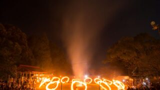 1日(土)は一般参加が可能な「たいまつ行列」。古代衣装をまとった約500名の人びとがグッドデザイン賞を受賞した「記紀の道」を歩く。また西都の神話絵巻を舞と音楽で再現した「炎の祭典」も見どころ。高さ約3メートルのやぐらに火をともし、古代衣装を身に着けた武人や女人が舞う姿は幻想的なイベント。2日(日)はコフリンピック、火おこし体験、勾玉づくり体験などのほか、年に一度の御陵墓一般公開もある。
