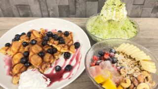 海外で人気のスイーツをはじめ、美味なるカフェメニューが話題の同店が、移転しリニューアルオープン!新メニューも登場し、さらにおいしく快適に生まれ変わった。写真は生クリームとブルーベリー、ソースのトッピングを追加した『パンケーキ』900円、『アサイースペシャルボウル』1600円、『抹茶ティラミス氷』1300円。スイーツメニューにはプラス500 円で『ドリンクセット』もオススメ。さっそくチェックしてお出かけを♪