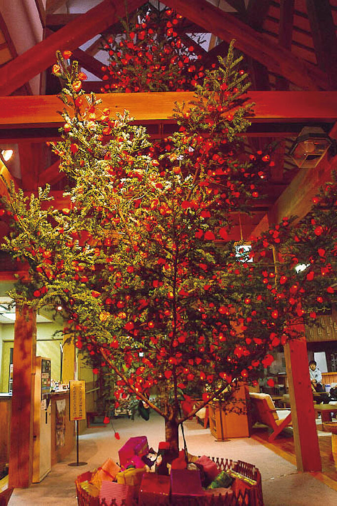 高さ8m のクリスマスツリーと、サンタクロースやトナカイなどの光輝