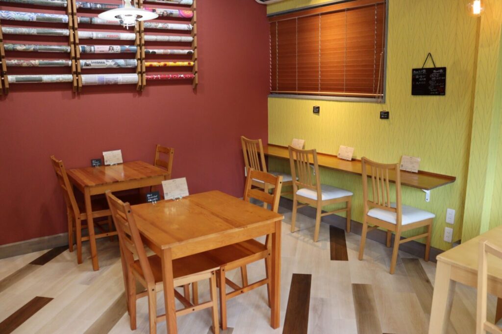 壁紙にもこだわり、見る方向で雰囲気がかわる店内
