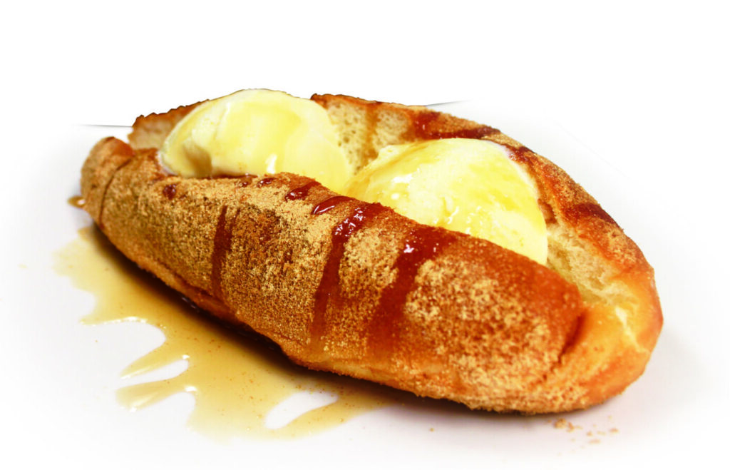 九州圏内で19 店舗を展開する居酒屋の人気デザート「揚げパン」に、新メニューが3品登場。『あんバター』582 円は、たっぷりのバターとあんこが相性抜群。カスタードとホイップのW クリームがたまらない『カスタード』582 円や、あんこに香ばしい焼き白玉をトッピングした『あん団子』582 円もオススメ。揚げたてをテイクアウトできるので、お土産にもどうぞ。『揚げパン5種』2435 円は予約してからのテイクアウトがおすすめ。