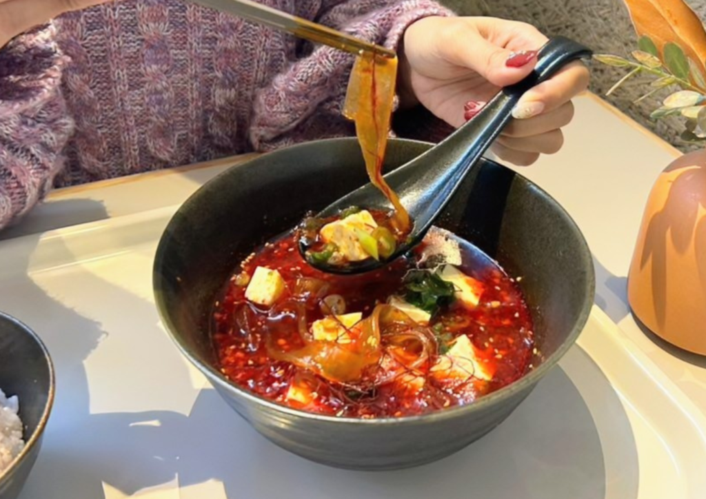『麻婆タンミョン』。濃厚スープが麺にしっかり絡む