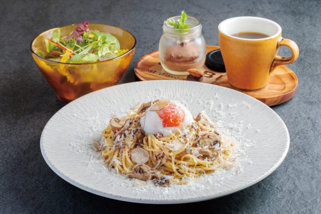 アムな食材に心を込めて、1カ月間限定でお得に提供する話題の月替わりランチ!取材時の12月はトリュフが香る、キノコと温泉玉子に粉雪のようなチーズが贅沢で美味なる一品。1月の一皿はInstagramをチェックしてお出かけを♪
