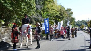 今年は前夜祭と本祭を開催。前夜祭では、「高屋神楽」の奉納、神話劇シアター、エレクトーン演奏会を行う。会場内には夏休みに親子で製作した竹灯籠が飾られ幻想的な雰囲気に。地元・神楽酒造より焼酎のふるまいもあり。本祭は伝統行事の「高屋山上陵祭」をはじめ都於郡小学校の児童たちによる迫力満点の「武者行列」、ステージイベントやゲーム、せんぐまきなど地域一体となって祭りを盛り上げる。