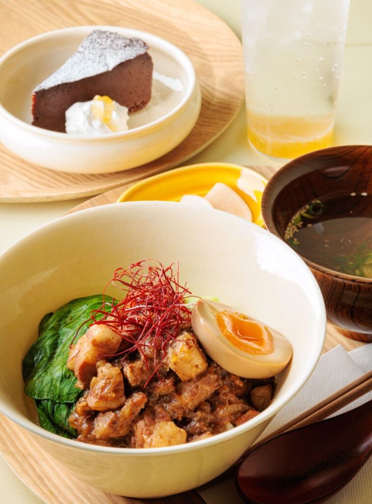 霧島の大自然で育った、甘みと軽やかな脂、やわらかさのバランスが絶妙な県産ブランドポーク「きなこ豚」を使用した美味なる丼が味わえる注目の新店。イチオシの『ルーローハン』は、スパイス香る自家製ダレにじっくり漬け込み、丁寧に仕上げた逸品だ。美しい器とともに、ゆったりとご賞味あれ。