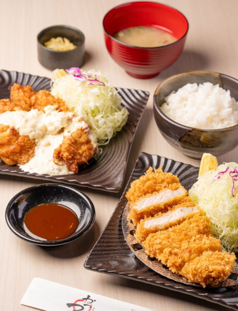 ロースかつは、独自の二段熟成でやわらかく仕上げた豚肉の旨味が堪能できる。自社オリジナルブレンドのパン粉を使うことで、サクサクとした食感に。チキン南蛮には、毎日店内でカットする国産鶏モモ肉を使用。まろやかなタルタルソースと香り高い甘酢が相性抜群。