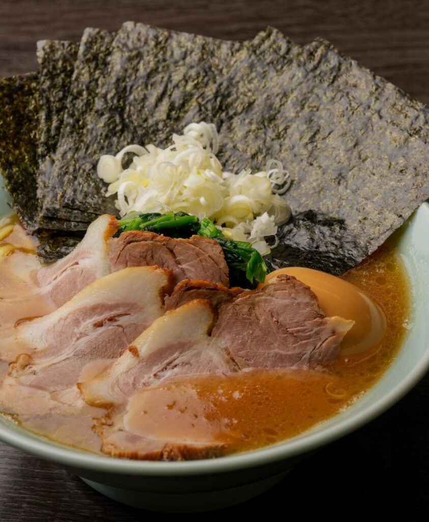 食べた瞬間に豚骨の力強い旨味が押し寄せるスープは、鶏ガラと豚骨を2つの羽釜で炊き上げたW スープを直前でブレンドし、唯一無二の旨味と深みを追求。肩ロースをしょう油ダレに漬け込んだ、燻製仕上げの新チャーシューも絶品。コク深い一杯をご堪能あれ!