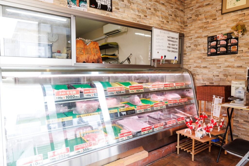「肉質・鮮度ともに自信があります」と店長の浮田さん。ショーケースには、JAみやざき直売店ならではのローストビーフのほか、牛心臓やテールなどめずしい部位もずらりとそろう。オススメは朝イチで仕入れる宮崎牛の霜降スライス。家族で囲むごちそうご飯にぜひ。